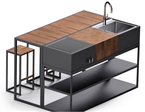 - The Garden Ease Components allows full customization including, stovetop burners, sink, chopping bock, drawer, gas grill, charcoal grill and marble modules.