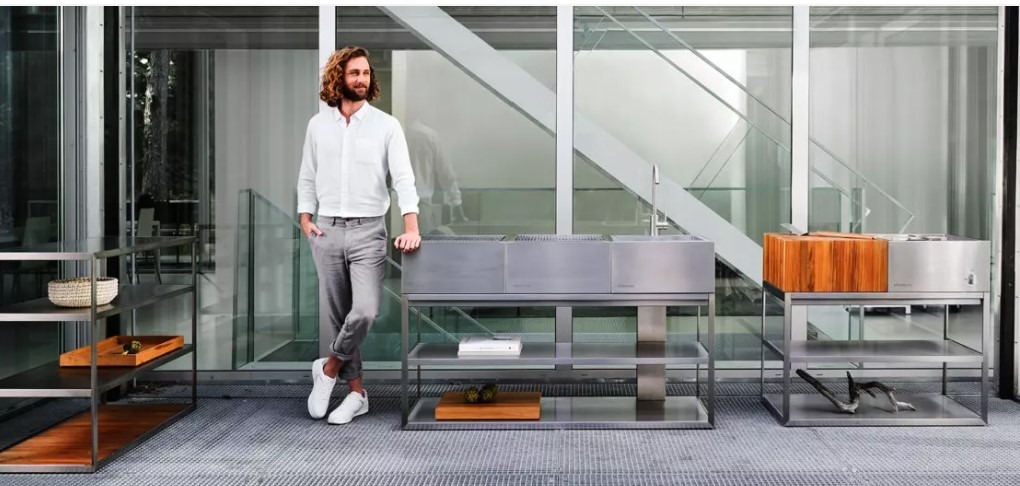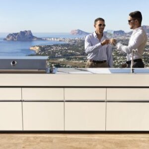 - The modern sideboard is perfectly suited for all of our grills, having the same height and depth, and features abundant storage space.