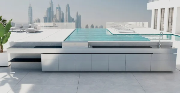 - Features high-performance minimalist grills in stainless steel.
