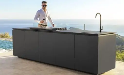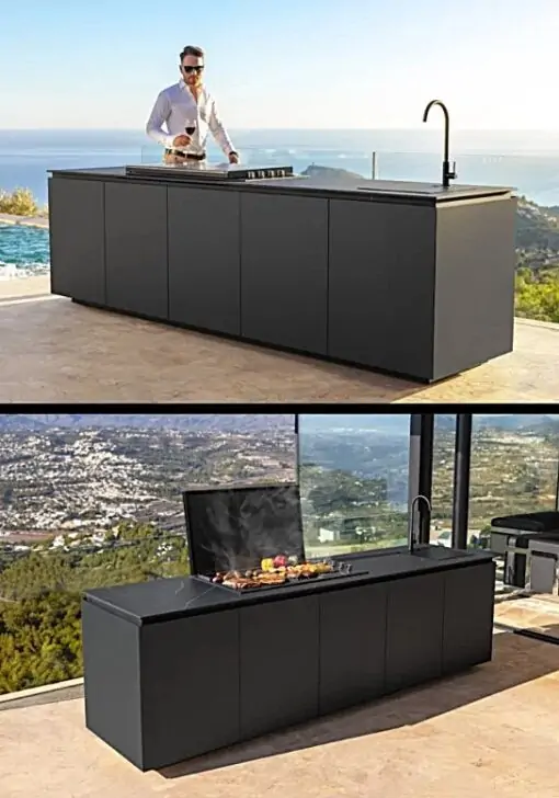- The Sleek Aventura 316 custom outdoor grill kitchen offers outstanding professional performance and large storage space, offering an authentic culinary experience.